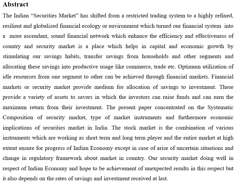 Indian Securities Market- Fundamental Framework, Financial Instruments and Economic Implications
